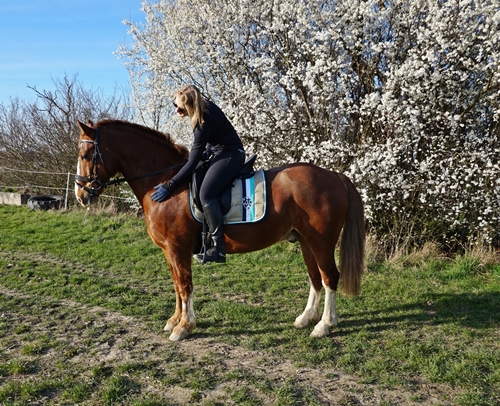Ich besitze einen 10 jährigen Welsh Cob Wallach, der mit der Kammerweite 34/35 nicht gerade schmal gebaut ist. Zu der breiten Kammer, kamen bei der Sattelsuche das Problem, dass der Schwerpunkt des Sattels nicht richtig liegt, warum ich gezwungen war oft mit erhöhten Kissen oder Unterlagen zu arbeiten.